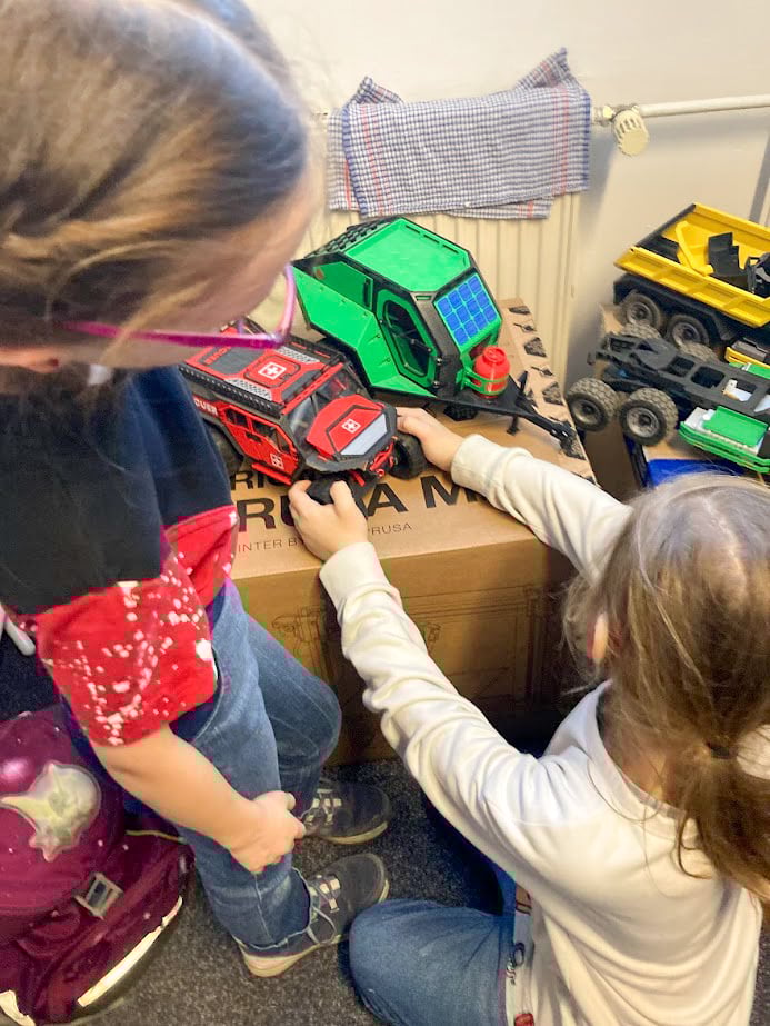 As a surprise, every child received a tiny yellow 3D Sets mini car charm – printed on our MMU.